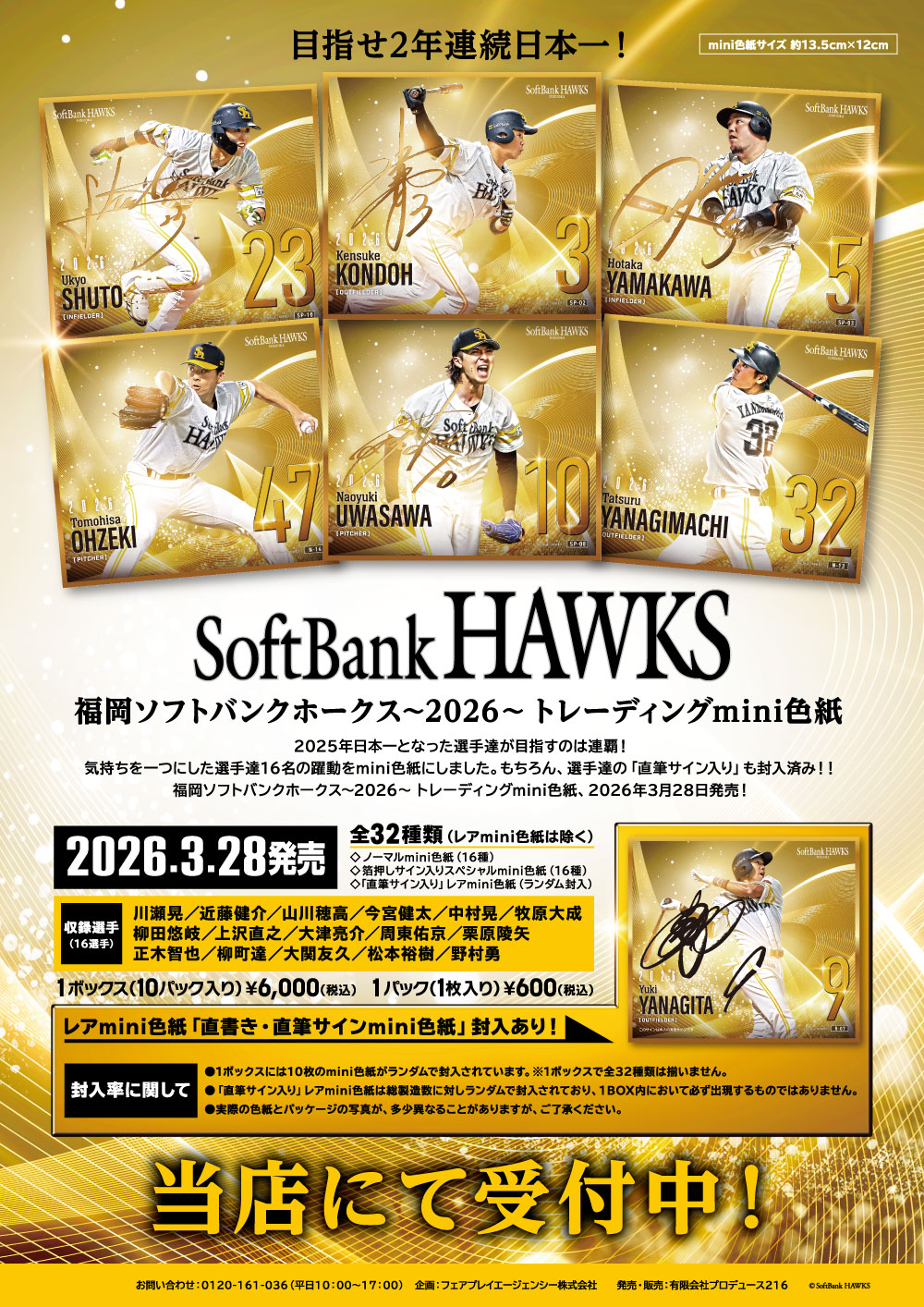 福岡ソフトバンクホークス~2026~ トレーディングmini色紙、2026年3月28日発売予定!