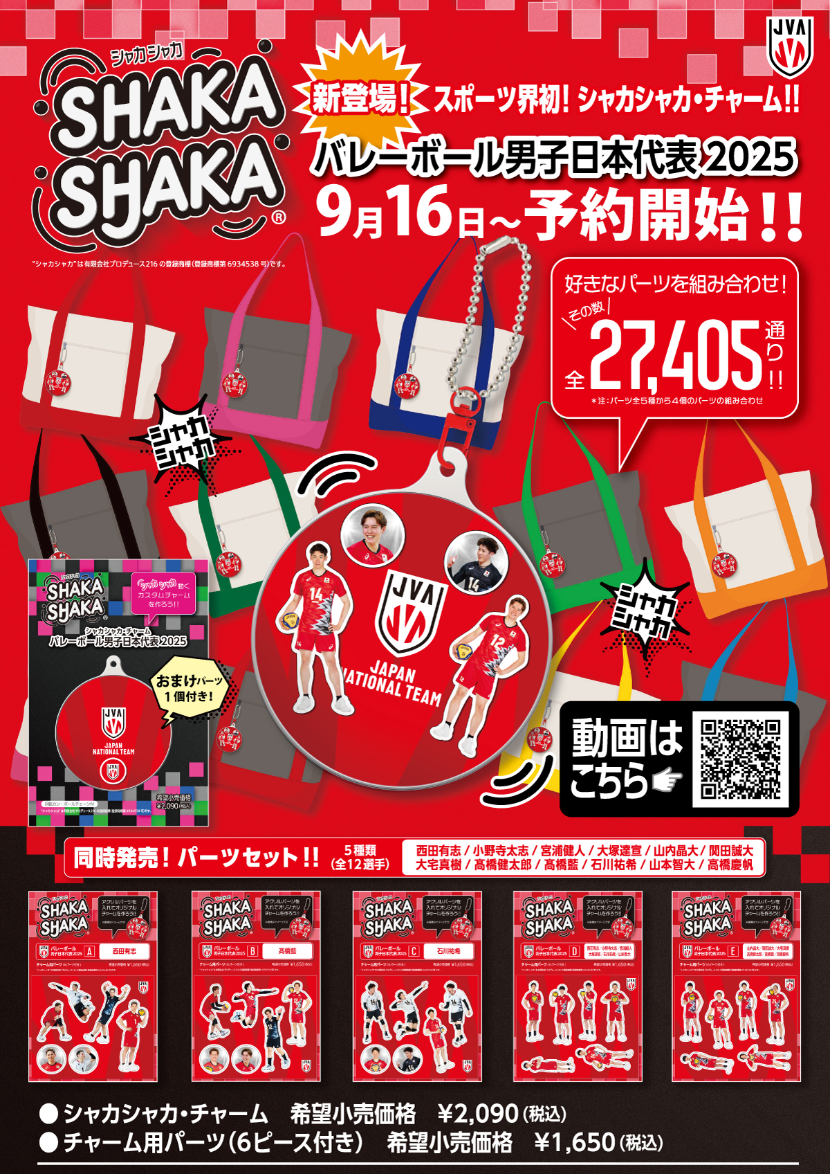 追加販売決定!シャカシャカ・チャーム「バレーボール男子日本代表2025」