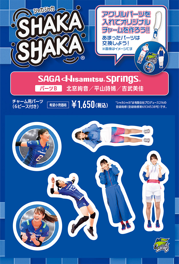 - チャーム用パーツ(6ピース付き)「SAGA久光スプリングス -Ⓑ北窓絢音/平山詩嫣/吉武美佳-」